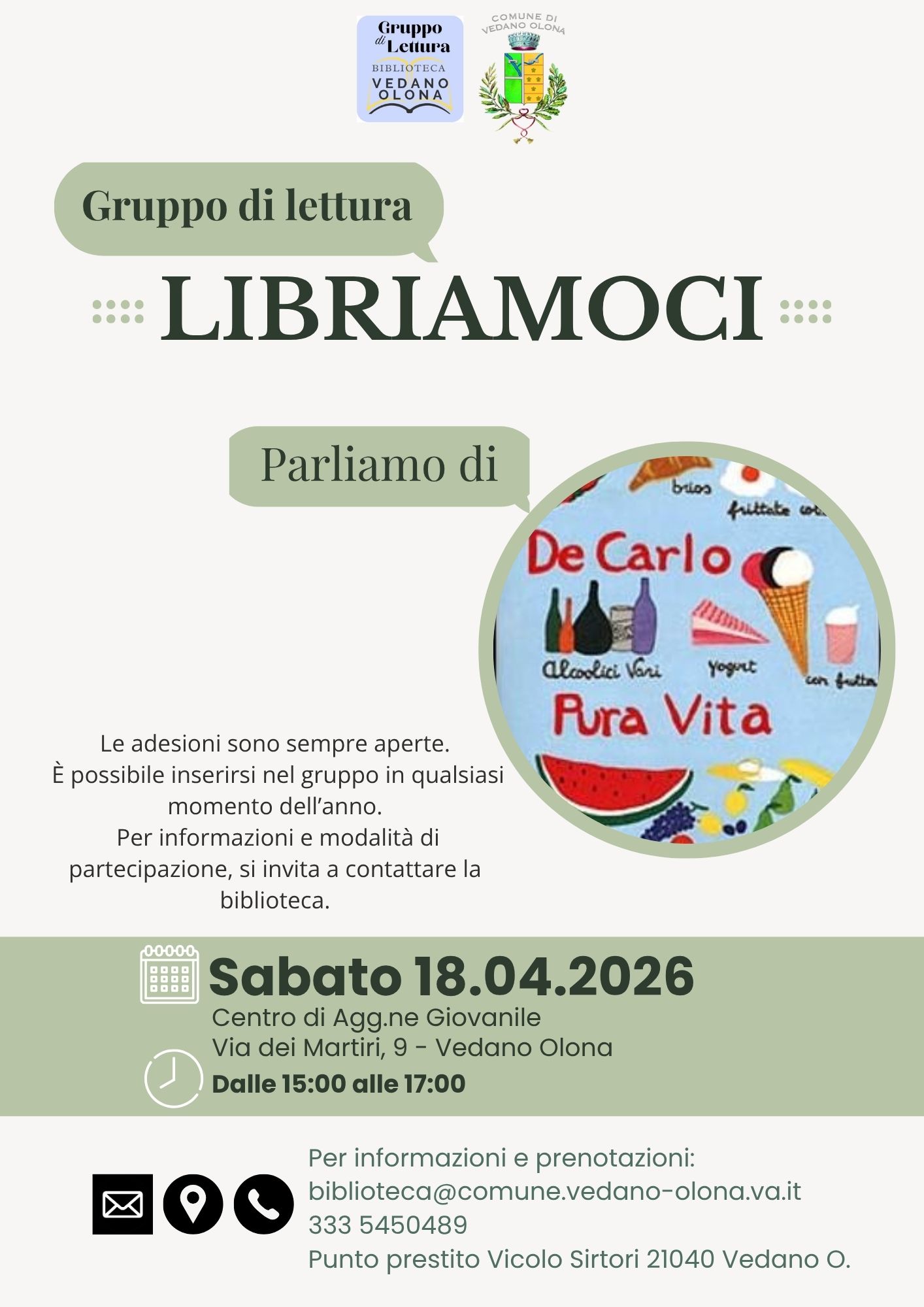 Per info: biblioteca@comune.vedano-olona.va.it